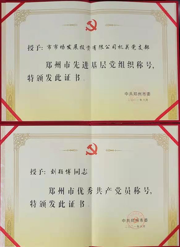 七一前夕,鄭州市召開(kāi)“兩優(yōu)一先”表彰大會(huì),隆重表彰為鄭州作出突出貢獻(xiàn)的優(yōu)秀黨員、優(yōu)秀黨務(wù)工作者和先進(jìn)基層黨組織。會(huì)上,公司機(jī)關(guān)黨支部榮獲“鄭州市先進(jìn)基層黨組織”榮譽(yù)稱號(hào),公司董事會(huì)秘書(shū)兼投資管理中心總監(jiān)、河南省暢尚農(nóng)業(yè)科技有限公司總經(jīng)理劉穎博榮獲“鄭州市優(yōu)秀共產(chǎn)黨員”榮譽(yù)稱號(hào)。
