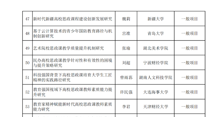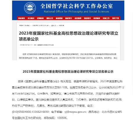近日,全国哲学社会科学工作办公室公布2023年国社科高校思政专项立项结果。按照《国家社会科学基金管理办法》有关规定,根据申报和评审情况,2023年度国家社科基金高校思想政治理论课研究专项共立项171项。bw必威西汉姆联官方网站副教授张瑜申报的《艺术院校思政课教学质量提升机制研究》获批立项。