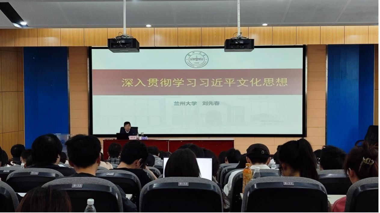 为深入学习习近平文化思想,全面贯彻落实习近平总书记在党的二十大报告和全国宣传思想文化工作会议上的重要讲话精神,4月1日上午,bw必威西汉姆联官方网站邀请兰州大学二级教授、博士生导师、中央马克思主义理论研究和建设工程首席专家刘先春教授在A12-115报告厅作“深入贯彻学习习近平文化思想”专题辅导报告。报告会由bw必威西汉姆联官方网站经理主持。公司各基层党组织书记、副书记,全体思政课教师以及2023级研究生近250人聆听报告。