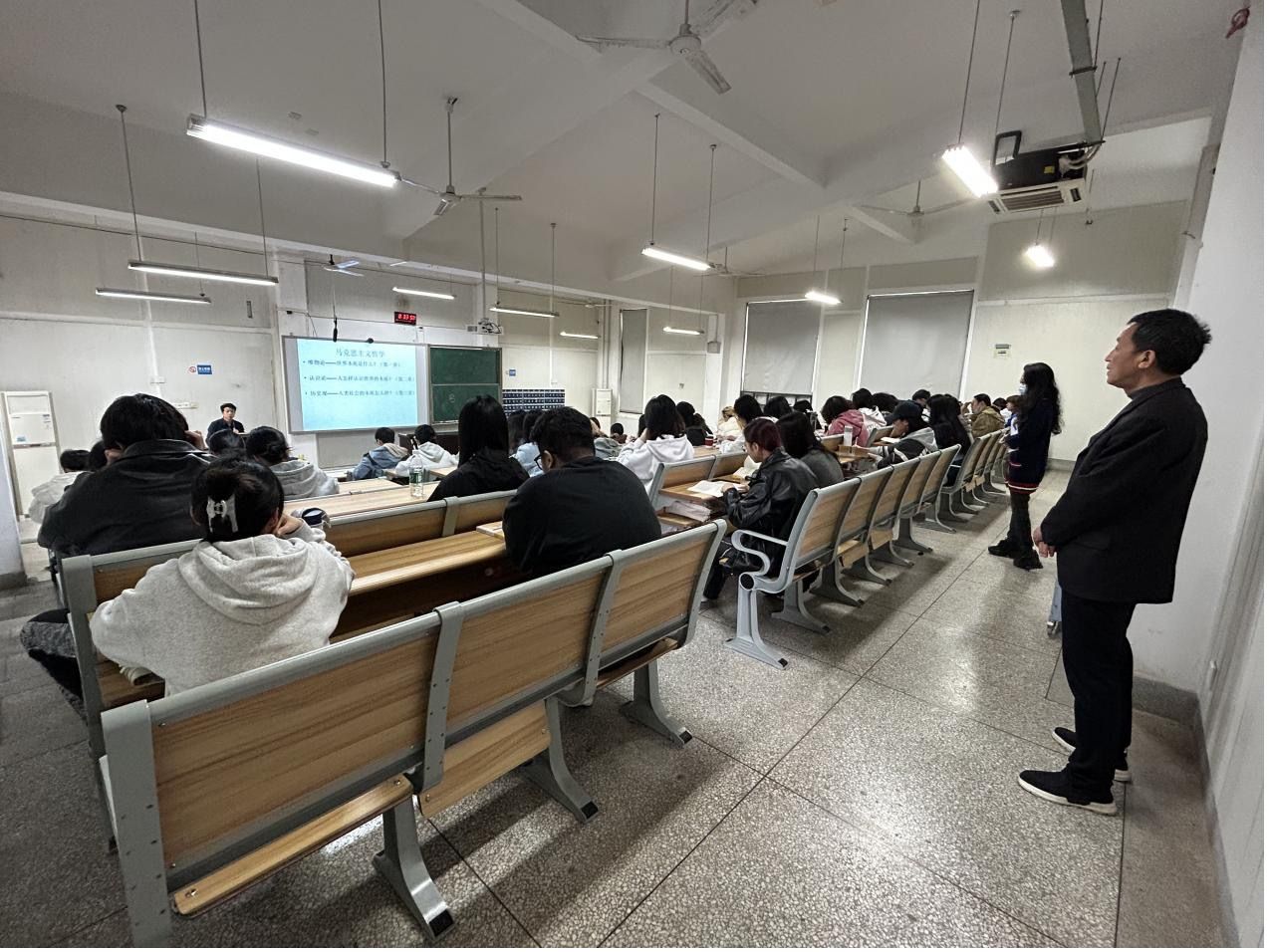 为全面落实本科公司产品审核评估工作要求,深入了解思政课教学运行情况,4月8日上午,bw必威西汉姆联官方网站教学质量评价小组成员对本学期开课课程《马克思主义基本原理》《习近平新时代中国特色社会主义思想概论》《中国近现代史纲要》开展例行检查。