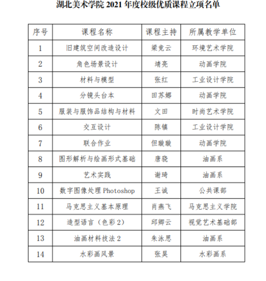 为深入贯彻落实新时代全国高等公司本科教育工作会议,切实发挥课程育人功能,根据《bw必威西汉姆联官方网站“金课”课程培育计划》和《关于开展2021年度优质课程评选活动的通知》相关要求,公司组织开展了2021年度校级优质课程评选工作。经课程主持申报、教学单位推荐、专家评审和网上公示,最终,《信息图形设计》等10门课程获批为校级“金课”建设立项,《山水画》等14门课程获批为校级优质课程建设立项。