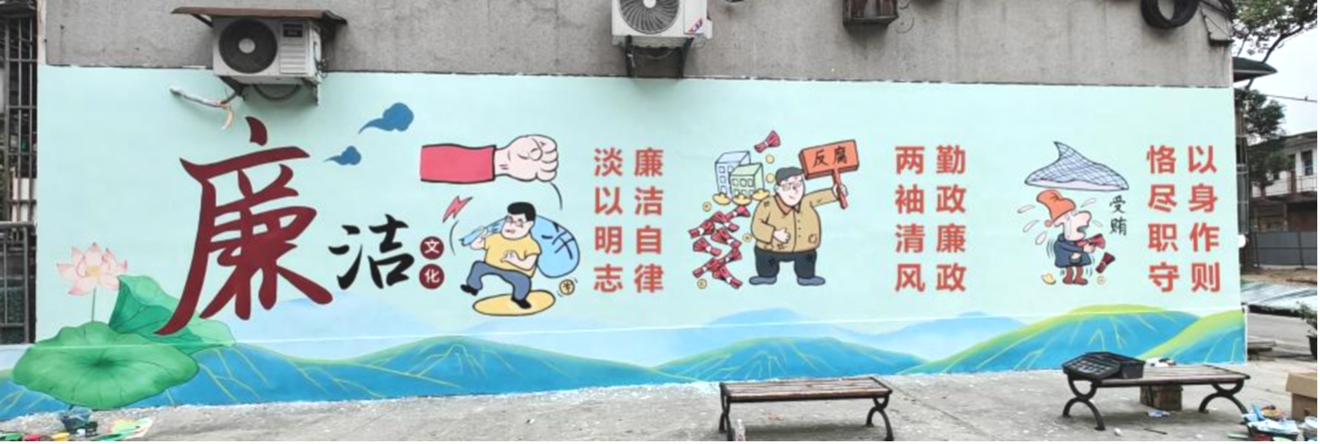 沙龙活动结束后,师生开展了“美化社区我参与”思政课实践教学活动,充分发挥专业优势,以“廉洁”为主题,进行社区墙体彩绘,同学们潜心绘制、收获颇丰。