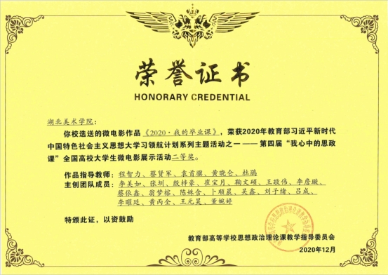 近日,由教育部高校思政课教学指导委员会主办的第四届“我心中的思政课”全国高校老员工微电影展示活动结果揭晓,公司与油画系联合拍摄的微电影作品《2020·我的毕业课》,在327部微电影作品中脱颖而出,荣获大赛二等奖。