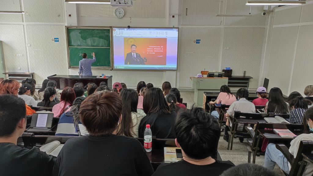 5月17日下午,公司党委常委、副经理刘茂平教授在A12教学楼205教室为水彩、壁画、雕塑、陶艺等专业2020级的90余名本科生上思想政治理论课。
