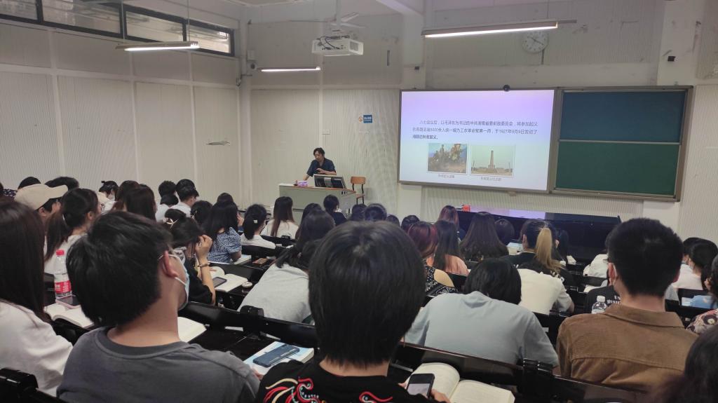 此次课程以土地革命战争时期党的发展历史为主线展开,张经理简述了南昌起义、秋收起义、广州起义和红军长征的历史背景,重点分析了八七会议、遵义会议的重要历史意义,穿插讲述了党旗设计的小故事及其蕴含着“农村包围城市 武装夺取政权”的深邃革命思想,展示了中国共产党人不畏强暴、坚持革命的坚强决心。