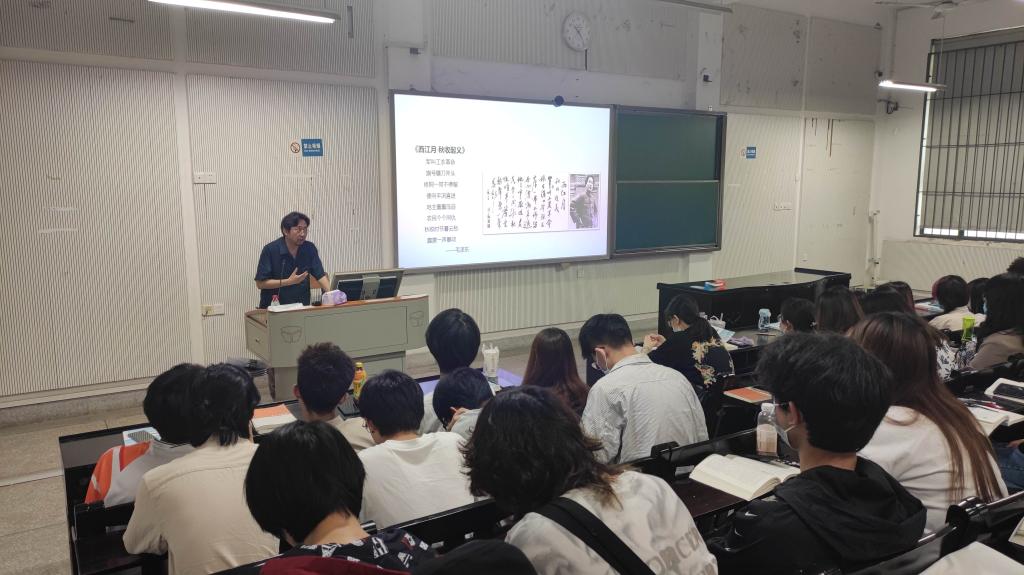 2022年5月25日上午,公司副经理张炼教授在A12教学楼106教室为中国画、书法、版画、插画和陶艺等专业2021级的百余名本科生呈现了一堂不一样的“思政+艺术”课程,践行了从思政课程到课程思政“盐融入汤”的教学改革探索。