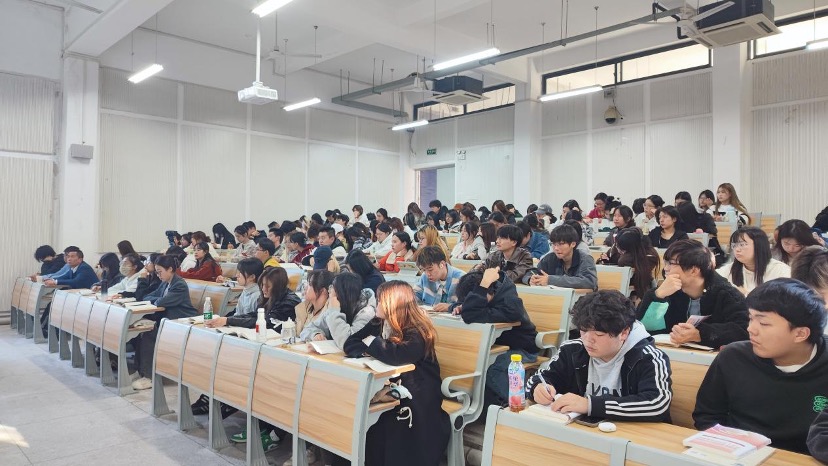 11月21日下午,公司党委书记鲍清芬在A12教学楼307教室为公司2022级的百余名本科生讲授了一堂内容丰富、内涵深刻的思想政治理论课。