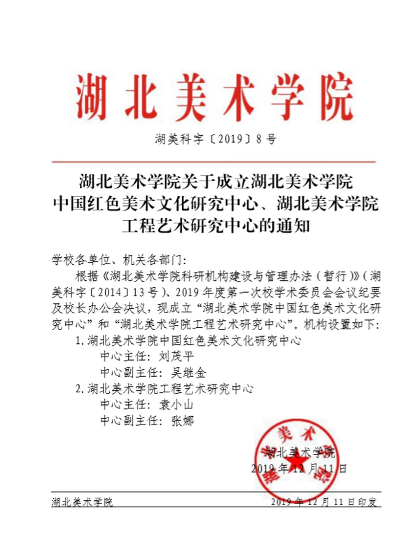 2019年12月,“bw必威西汉姆联官方网站中国红色美术文化研究中心”正式成立并发文。
