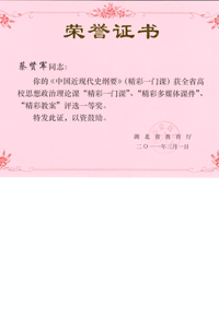 2011年科研成果 参编辅助教材《延安精神》。《中国近现代史纲要》(精彩一门课)获全省高校思想政治理论课“精彩一门课”评选一等奖。
