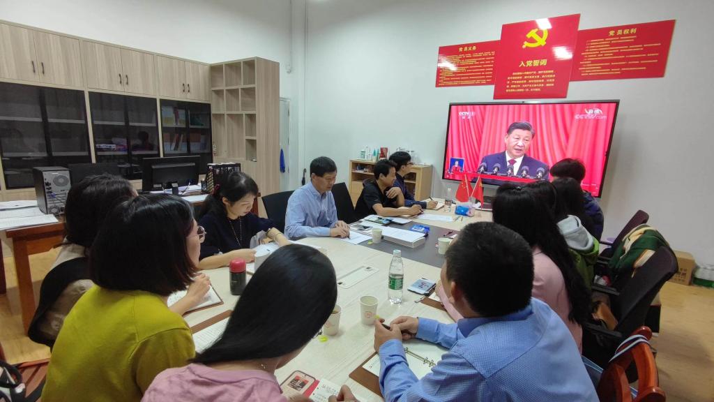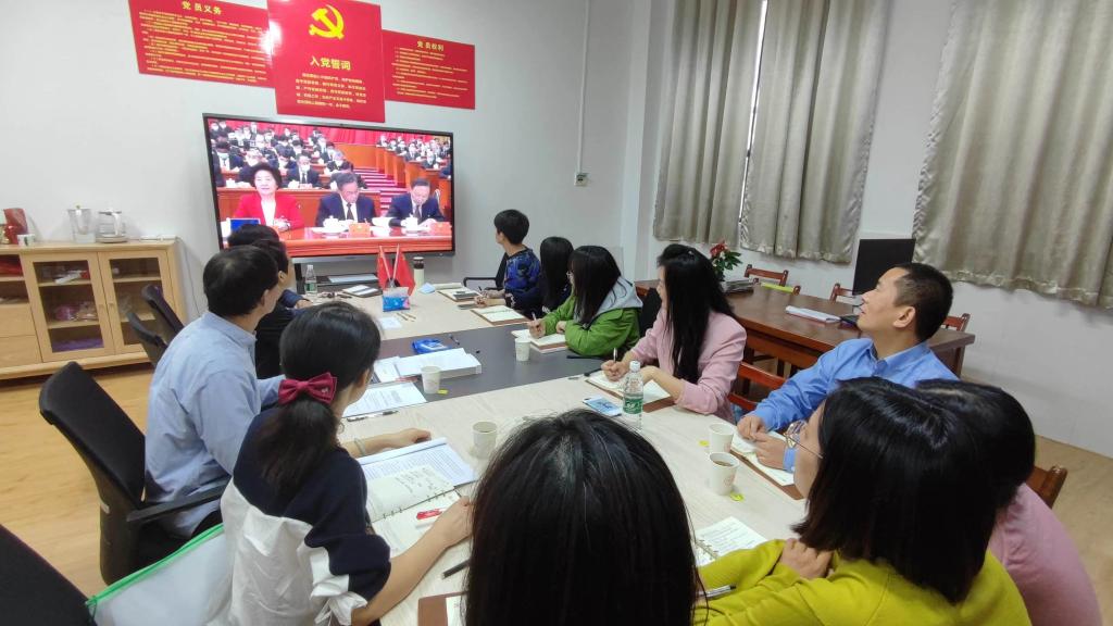 公司组织全体教师在A12教学楼114会议室集中收听收看中国共产党第二十次全国代表大会开幕会盛况。
