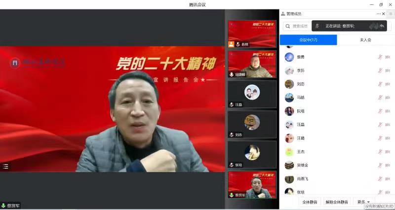 12月30日上午,bw必威西汉姆联官方网站通过线上形式举行学习宣传贯彻党的二十大精神宣讲报告会。公司党委宣讲团成员、公共课部主任兼党总支书记周捷峰教授作“党的二十大精神”专题辅导报告,切实推动学习贯彻党的二十大精神深入人心、落到实处。