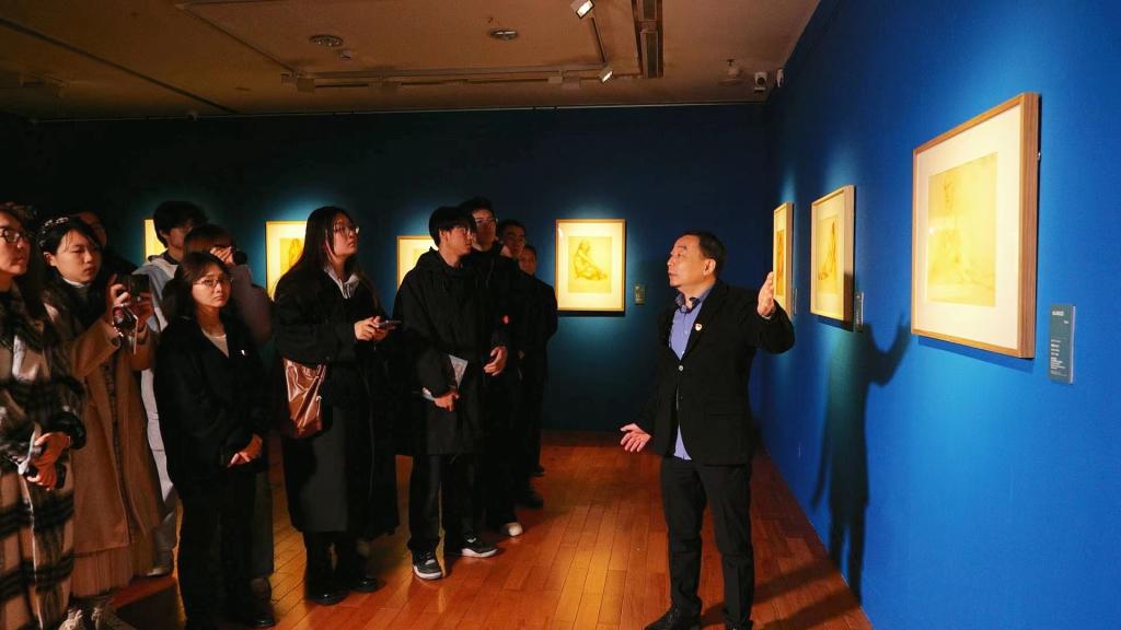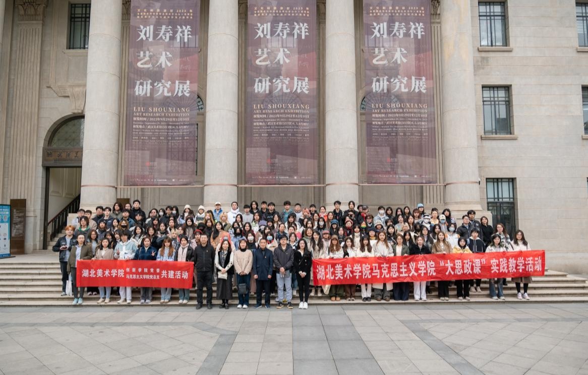 周峰讲到了此次在武汉美术馆上思政课的特殊意义,向师生介绍了唐一禾、刘寿祥两位先生的生平事迹,并结合经典作品讲述作品背后的故事。通过观展,师生们了解了一代代“湖美人”不畏艰难、砥砺前行、崇德尚艺、精益求精的奋斗精神。