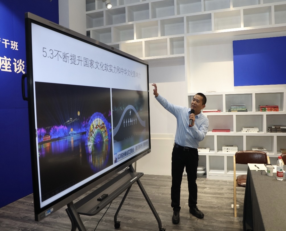 公司教师蔡勇在座谈会上做热场讲解报告。他首先扼要介绍了全国宣传思想文化工作会议的主旨精神,接着,他围绕习近平文化思想的形成脉络、丰富内涵、重大意义展开具体论述,着重阐明新时代宣传思想文化工作的价值、使命、目标、原则、路径等问题。最后,他以习总书记的金句“对历史最好的继承就是创造新的历史,对人类文明最大的礼敬就是创造人类文明新形态”收尾,展望未来,有习近平文化思想的正确指引,有亿万人民群众的团结奋斗,我们一定能够在建设社会主义文化强国、建设中华民族现代文明的奋斗和实践中展现新气象新作为。