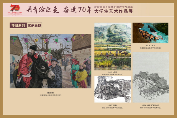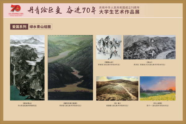 本次展览自今年5月启动以来,陆续收到来自各院系的本科生、研究生及部分员工提交的作品约900件,从中挑选了百余名学子的新创佳作近150件展出。这些作品多以爱我中华、时代变迁、大江大湖大武汉、喜迎军运会等为题材,或栩栩如生或独具匠心,集思想性、艺术性、观赏性于一体,反映了公司坚持思政教育与专业教学双促进的美术教育改革新成果,彰显了公司作为华中地区唯一一所高等美术学府,践行“深入生活,扎根人民,用心用情用功讴歌伟大时代”新要求的责任与担当。