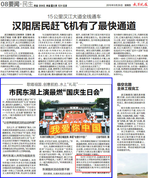 《武汉晚报》2019年9月26日第8版刊载报道