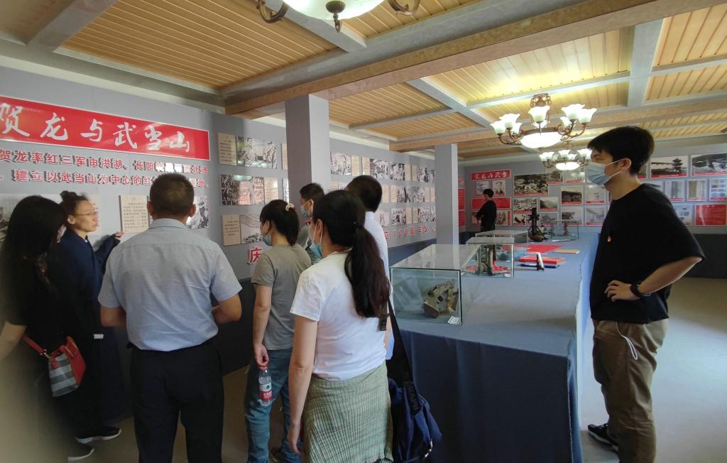 在武当山紫霄宫红色教育基地,大家一同参观了“红三军司令部”旧址、红三军后方医院及红三军在武当山展览馆等。从贺龙元帅的办公室到红军伤病员疗伤修养的医院,讲解员生动讲述着贺龙将军及所率红三军与武当山的渊源,道出武当道人支持人民革命事业的胸怀及其与红军之间的深厚情谊。在展览馆前,面对鲜红的党旗,全体党员高举右手庄严宣誓,重温对党忠诚的誓言,砥砺初心,牢记使命,坚定理想信念。