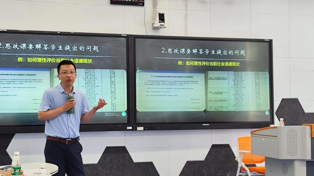 李志强以“如何上好思政课——‘八个相统一’的学习体会与教学实践”为主题,提出思政课教师要坚定地落实贯彻习近平总书记提出的思政课教师“六要”标准,即政治要强、情怀要深、思维要新、视野要广、自律要严、人格要正。思想政治教育者不仅要完成知识传递的教育任务,更要加强对马克思主义理论的坚定信仰,进而通过自身对于理论的践行去影响教育对象。